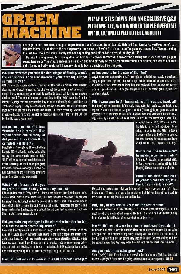 Make sure you go out and pick up this week's Wizard Magazine. It has a great 4 page article on the Hulk. Here is one of the pages to wet your appetite. Now go and buy a copy!
