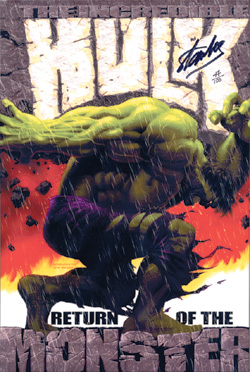 http://www.dynamicforces.com/htmlfiles/p-C102866.html Stan "The Man" Lee signs this massive hardcover collection featuring his most brutish creation (well, maybe the Thing's a brute, but the Hulk's got him beat) - the Incredible Hulk! Stan's characters are icons recognized all over the world! Items signed by Mr. Lee usually sell out instantly. Just try and get his signature at a convention. Waiting in line for hours at a time is NNNNOOOOOOO fun. But DF does the work for you, so take advantage of this rare chance to this incredible book to your collection! And not just any book a limited signed hard cover of the Incredible Hulk!